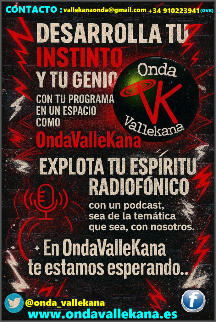 No te lo pienses mas, preguntanos por hueco en la parrilla de programacion, y embarcate en hacer tu programa con nosotros, sea de la tematica que sea. Dale difusion en redes, compartelo y date a conocer y da a conocer lo que nos quieres contar, lo que quieres expresar y como lo quieres expresar a traves de una RADIO LIBRE, SOCIAL, FAMILIAR, ABIERTA, de BARRIO, y donde no tenemos pelos en la lengua, en contar TODAS las cosas que pasan en el mundo actual, y en COMO contarlas . . . embarcate y subete a la nave radiofonica DIGITAL de OndaValleKana . . .donde Partimos la Pana .