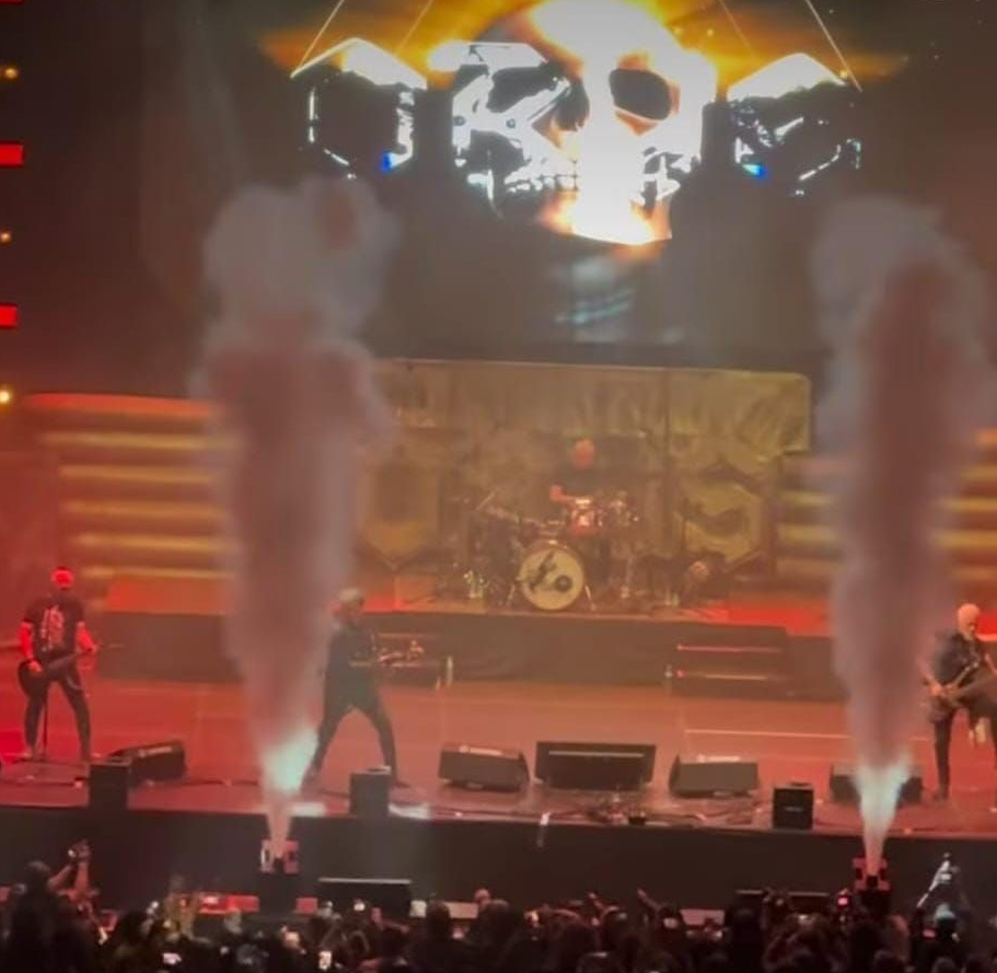 3 grandes pantallas acompañaban un esplendido show de heavy metal, acompañados de gran despliegue de efectos de explosiones, humo, pirotecnicos,etc… a lo largo de las mas de 2 horas y media de concierto.