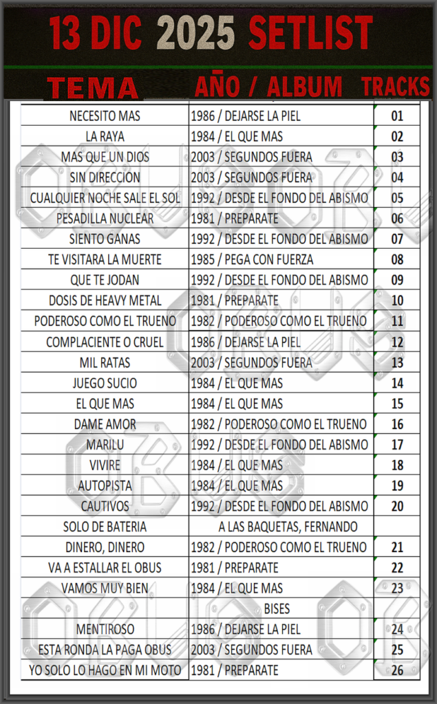A continuacion os dejamos nuestra IGUANAROCKRONIKA del concierto de #OBUS celebrado en Vistalegre, Madrid , el pasado 13 diciembre de 2025 :